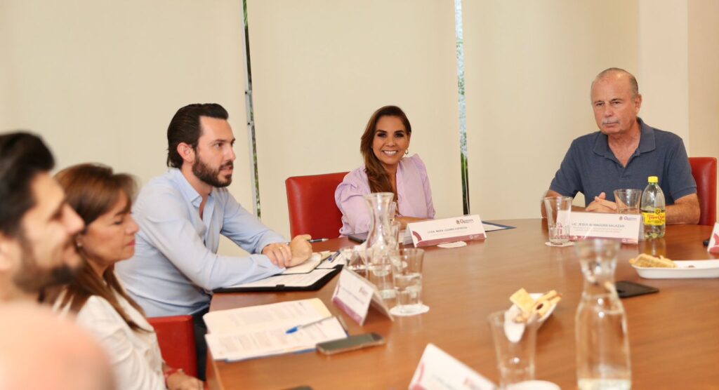 Cancún.- La gobernadora del Estado, Mara Lezama, se reunió con el Consejo Hotelero del Caribe Mexicano que encabeza Toni Chaves, para dar seguimiento a la proyección turística que tiene el estado, revisar los avances de los trabajos coordinados de la estrategia contra el sargazo, seguridad, promoción de los 12 destinos y operatividad de los fideicomisos.